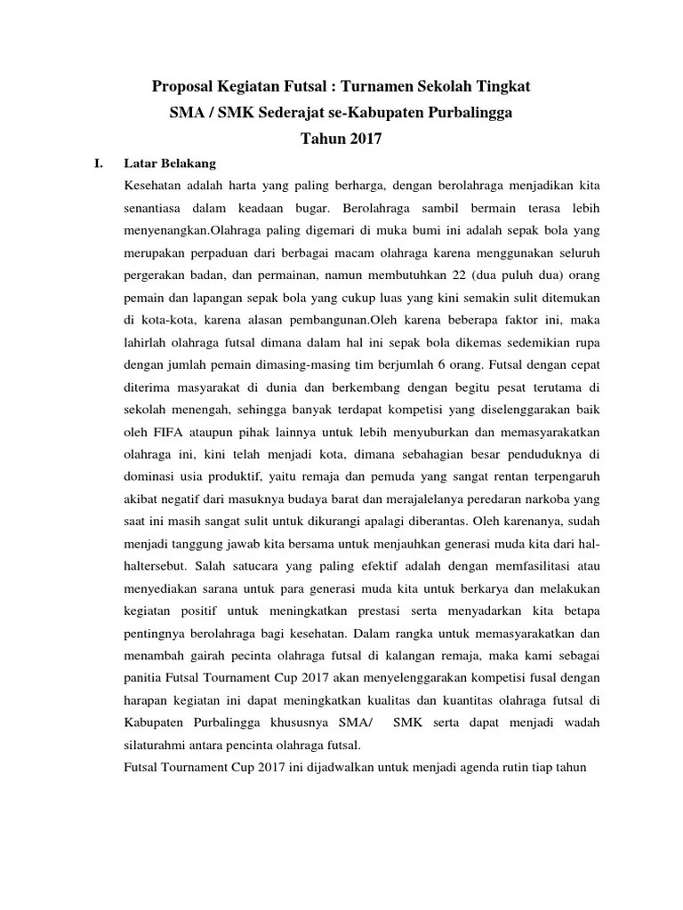 Contoh Proposal Kegiatan Turnamen / Contoh Proposal Pengajuan Dana Untuk Mengikuti Turnamen Futsal Berbagi Contoh Proposal / Tujuan kegiatan tujuan turnamen ini diselenggarakan adalah antara lain: