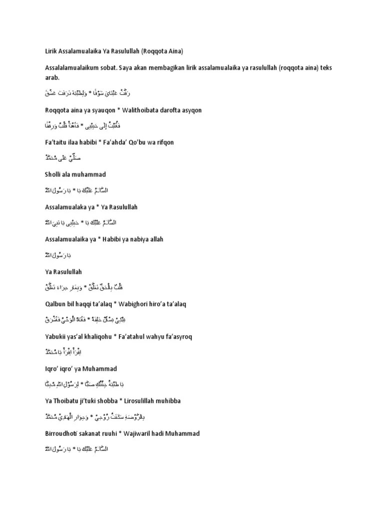 Sholawat roqqot aina nissa sabyan lirik terjemahan nissa sabyan nissa sabyan lirik nissa. Lirik sholawat assalamu'alaika ya rosulallah (roqqota aina)assalamualaika ya habibi ya nabiyya allah. Assalamu alayka ya ya rasool allah Merdunya roqqot aina ya syauqon lirik indonesia sholawat. Lirik sholawat roqqot aina dari sabyan yang juga dikenal memiliki judul assalamu'alaika ya rosulalloh dan juga roqqot aina ya sauqon.
